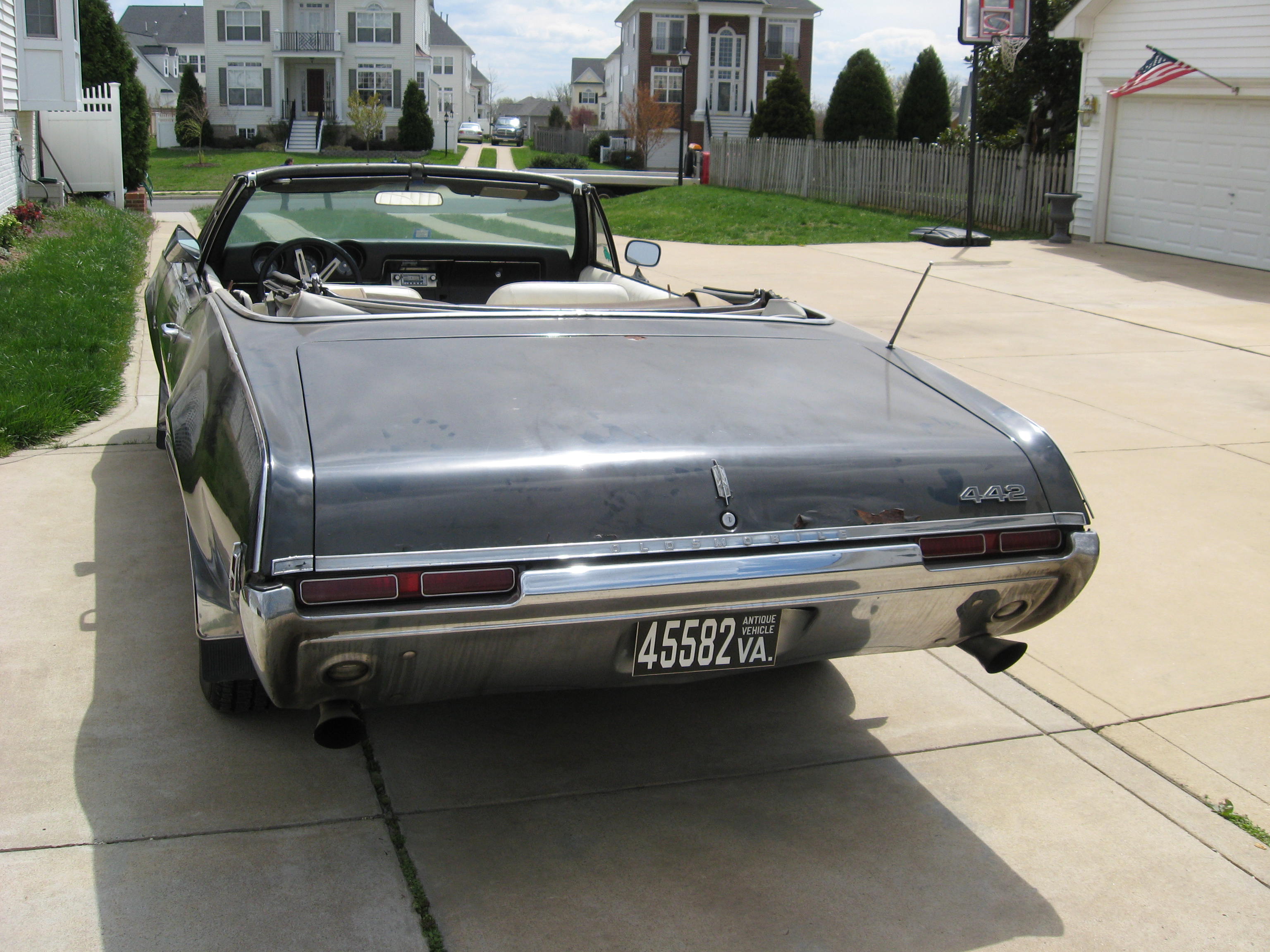 In 1985, I got into a car accident. I was the passenger in my Dad’s Ford Granada that my older brother was driving. We were rear-ended by an SUV, the impact bend the Granada’s chassis and left me with injuries to the shoulder. I received a small settlement and decided to save that to purchase a car. Late summer of 1985, my Dad took me for a ride around Alexandria and Arlington, Virginia to see what cars were for sale. We came across a gas station that had a 1965 Mustang Convertible and a 1968 Oldsmobile 4-4-2 convertible. We looked over both cars and my Dad really liked the lines of the Olds. We negotiated a price and the rest was history.