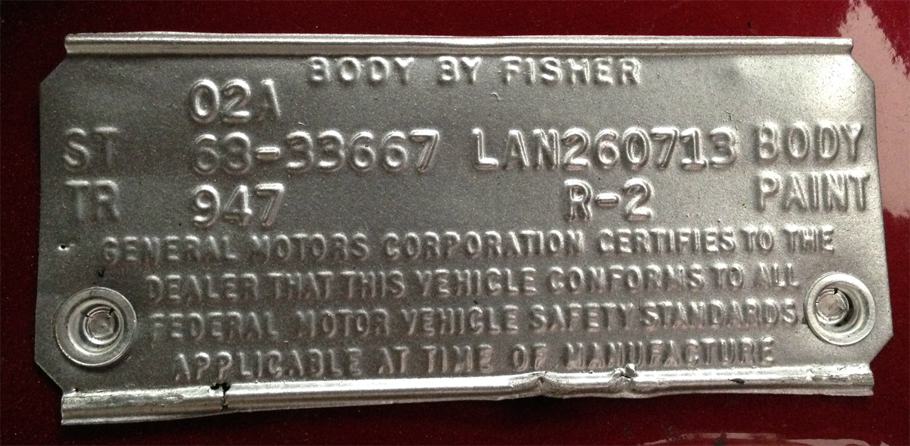 With this valuable information, I was able to verify some important information, such as the original color being Scarlet Red (R-2), It was built in the first week of February, Interior Trim, etc.